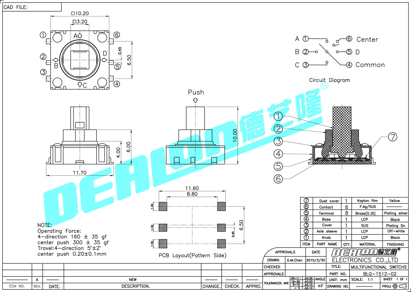 4-direction4°±2° Center push0.2mm±0.1mm