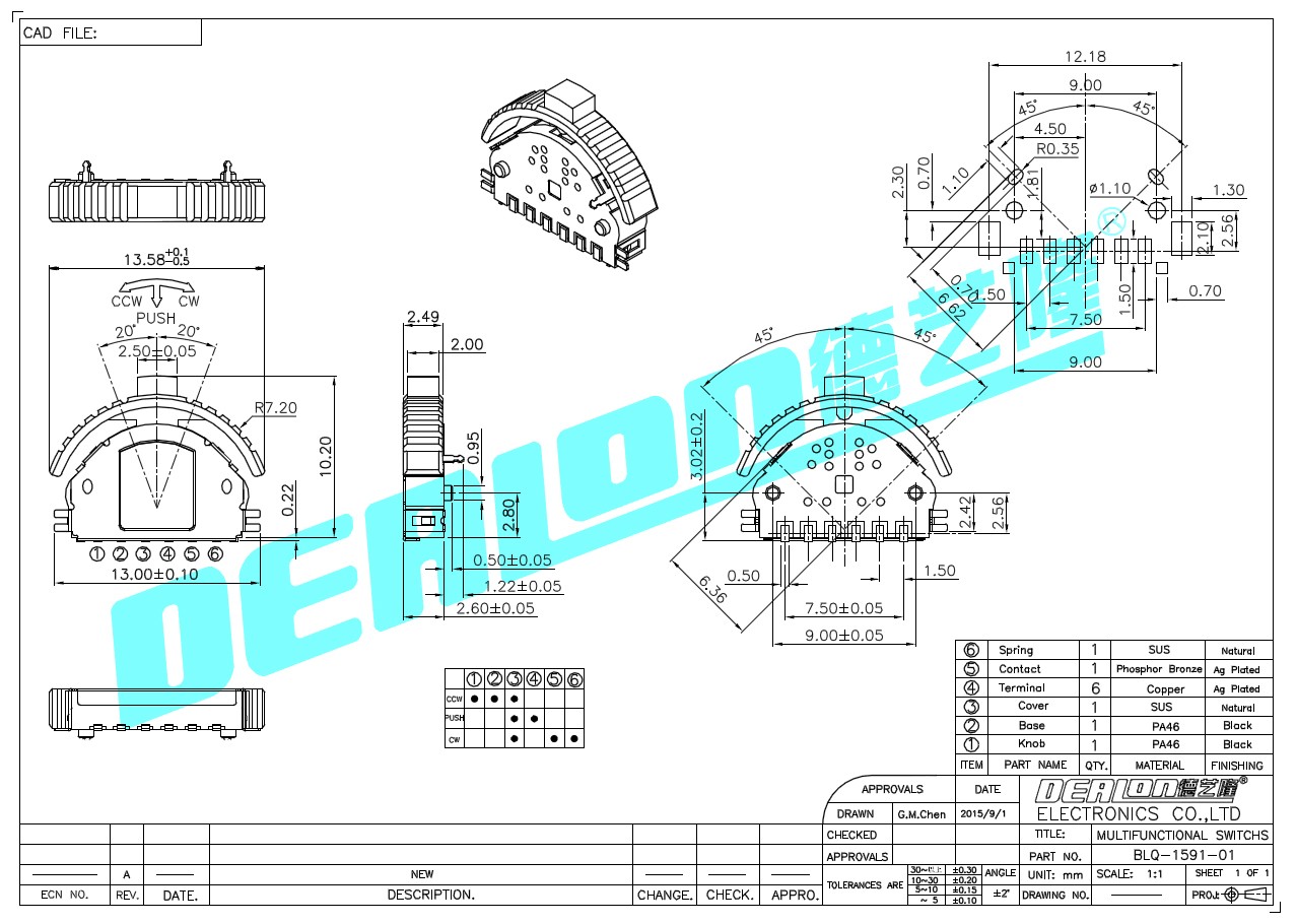 4-direction-20°-0°+20° Center push0.7mm±0.1mm