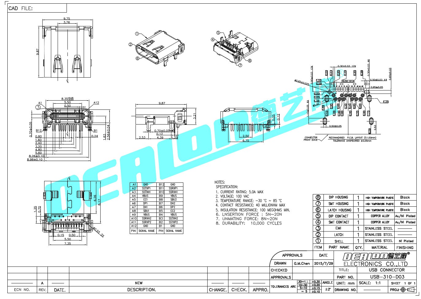 USB插座 USB-310-D03